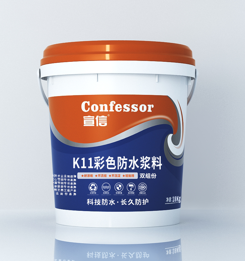 KII彩色防水浆料是用聚合物乳液改性水泥的一款双组份刚性防水,可在潮湿的基面上施工,具有一定的渗透性,渗透到水泥基材的毛细孔,封闭水通道,从而达到更好的防水效果,抗压强度,粘接力优异。